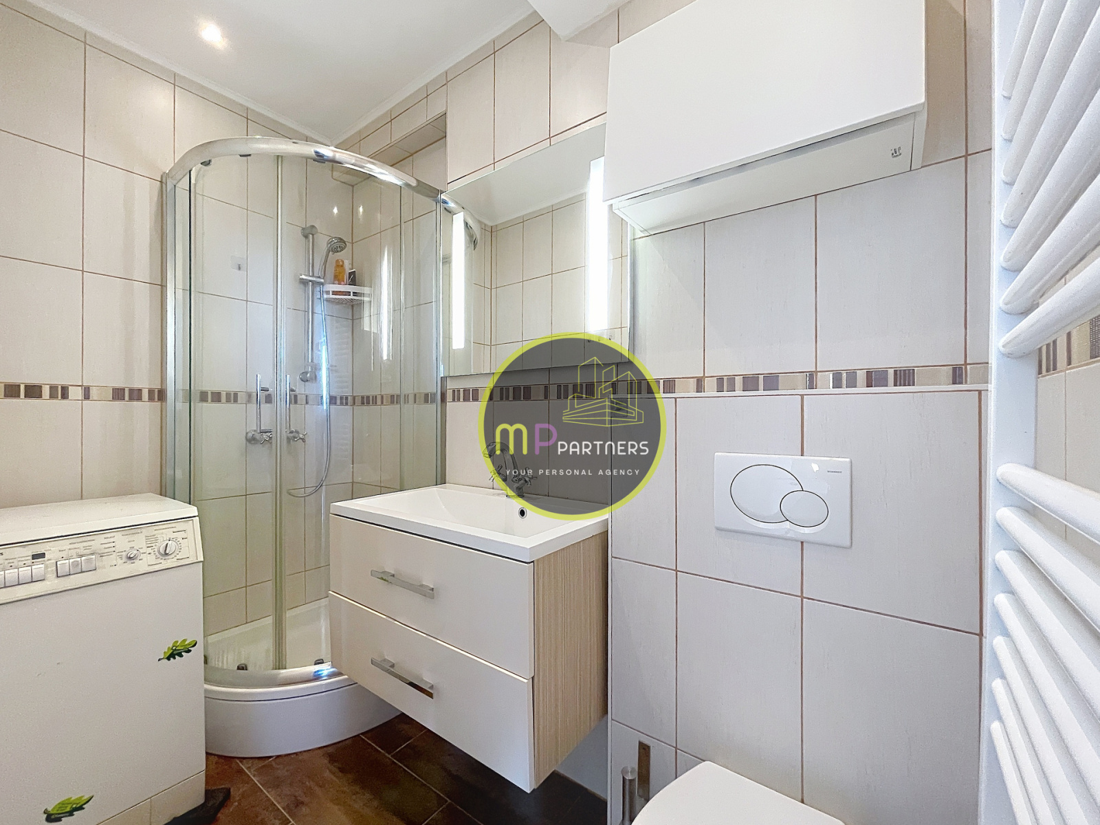 - Salle de douche avec WC et machine à laver