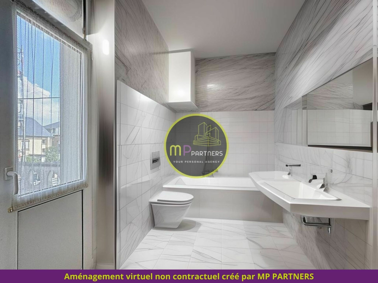 - Salle de bains avec baignoire et WC avec accès balcon