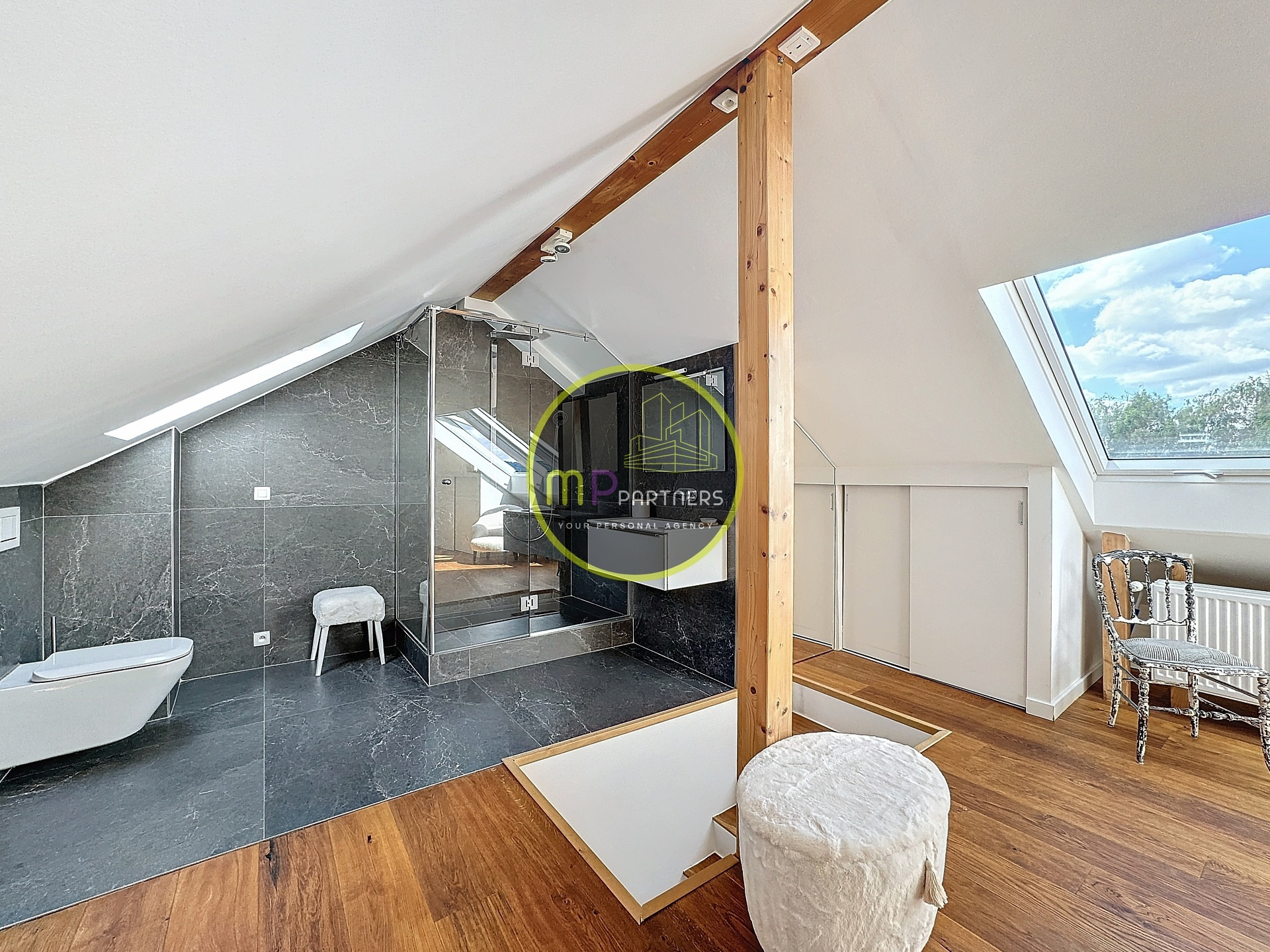 - 1 suite parentale de +/- 24.00m² avec sa salle de douche et WC situé dans les combles