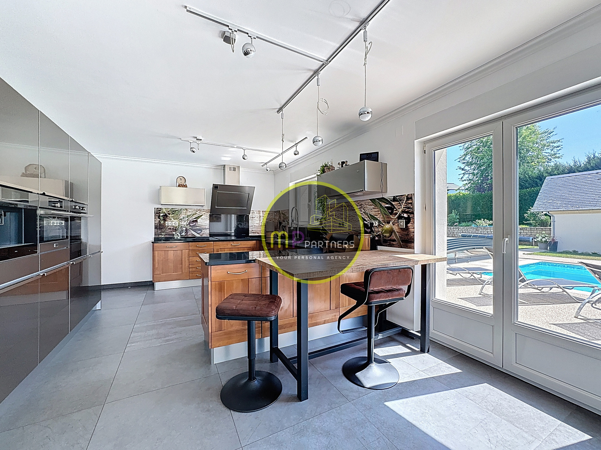- Cuisine de +/-22.00m² avec accès piscine et terrasse
