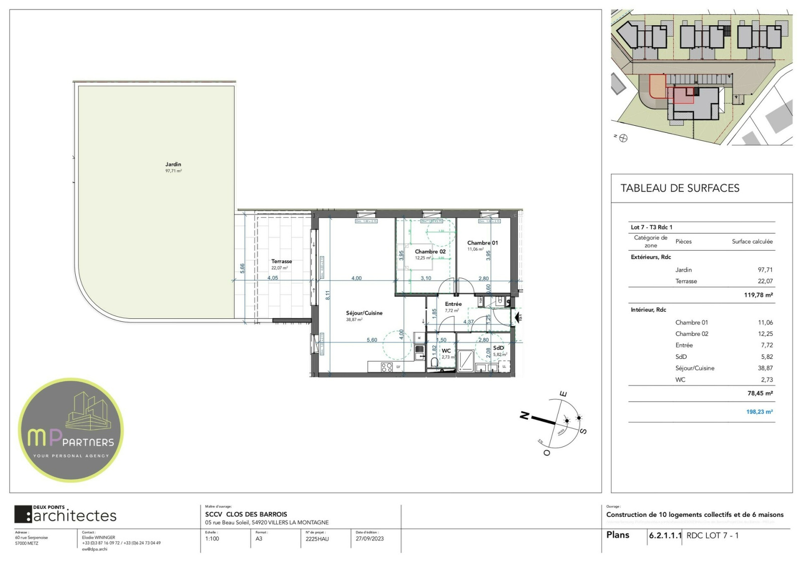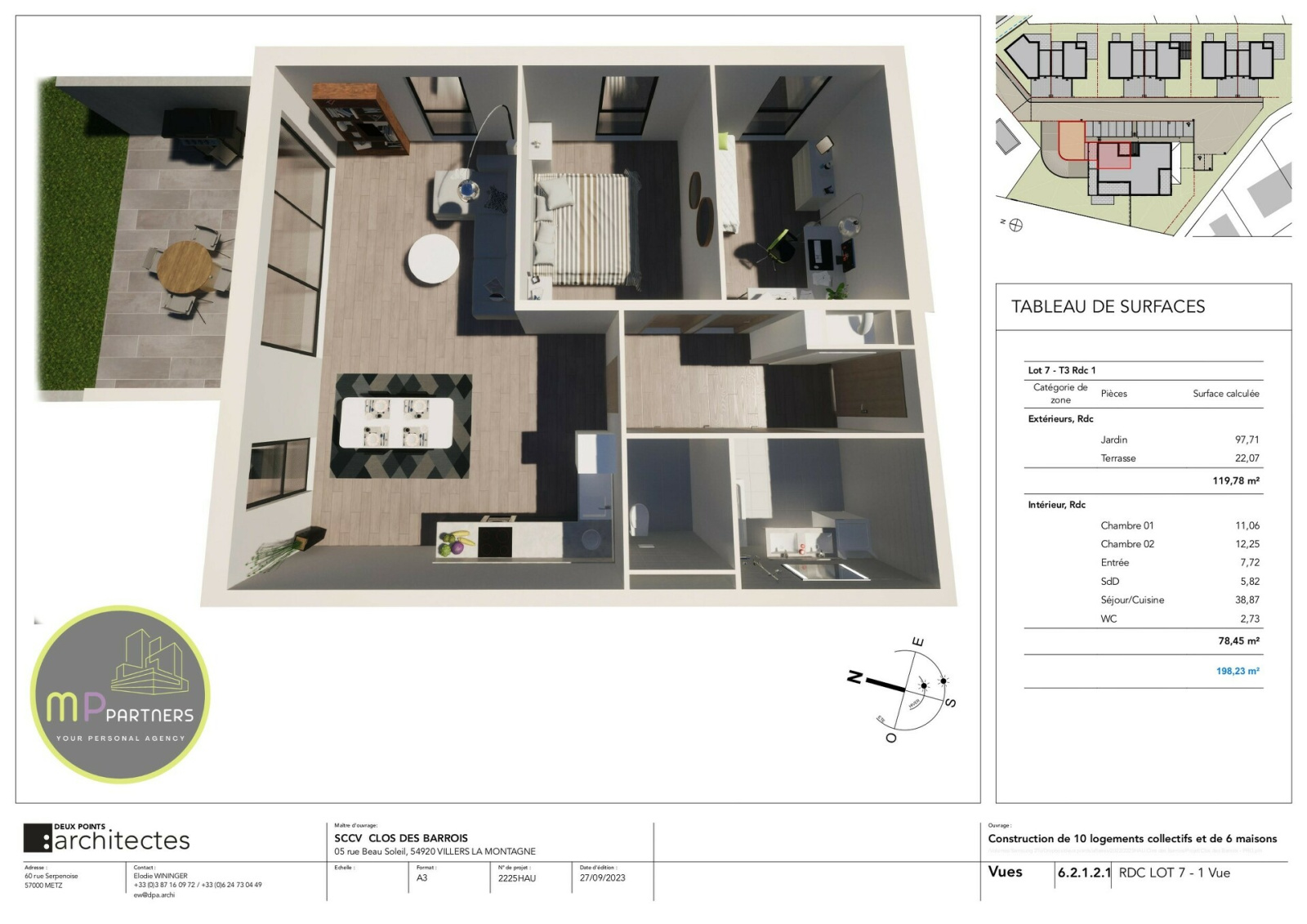 Situé dans la résidence '' Le Clos des Barrois '' de haut standing à Haucourt-Moulaine. L'appartement Lot 2 est au RDC, il dispose d'une surface habitable de +/- 78.45m² et se compose comme suit :